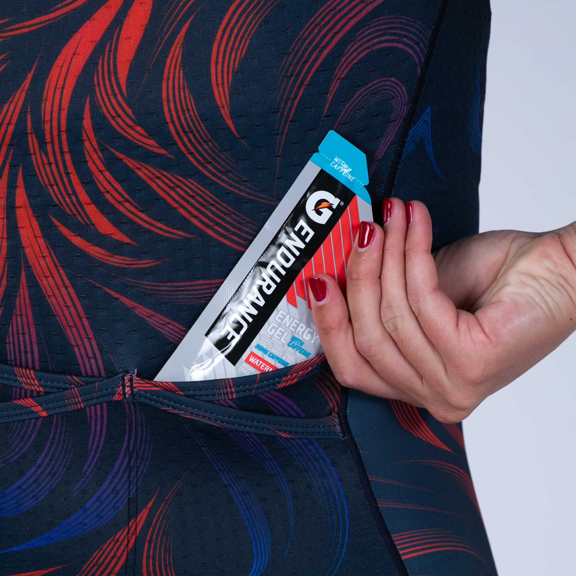 - Khóa kéo Cam Lock hở toàn bộ chiều dài để dễ dàng dừng lại giữa chặng đua