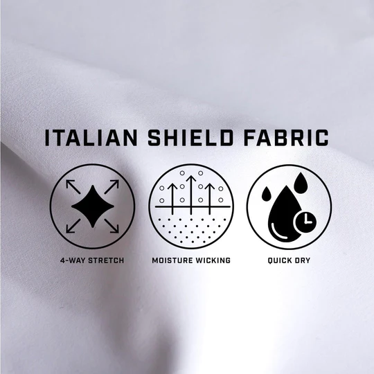 - Vải Italian Shield thăng hoa đảm bảo khả năng quản lý độ ẩm, sự thoải mái và độ bền tốt nhất