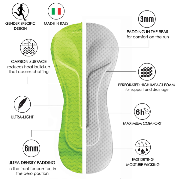 - PRO CARBON Tri Chamois mang lại sự thoải mái tối đa ở tư thế khí động học