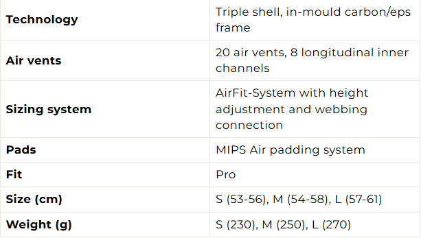 Được thiết kế tại Ý, AIR PRO đã được phân tích, thử nghiệm và phát triển với sự hợp tác của Đội đua xe đạp chuyên nghiệp Astana, đồng thời tích hợp các hệ thống phân tích tiên tiến nhất với dữ liệu mô phỏng toán học, bao gồm cả các thử nghiệm đạt được trong đường hầm gió.
